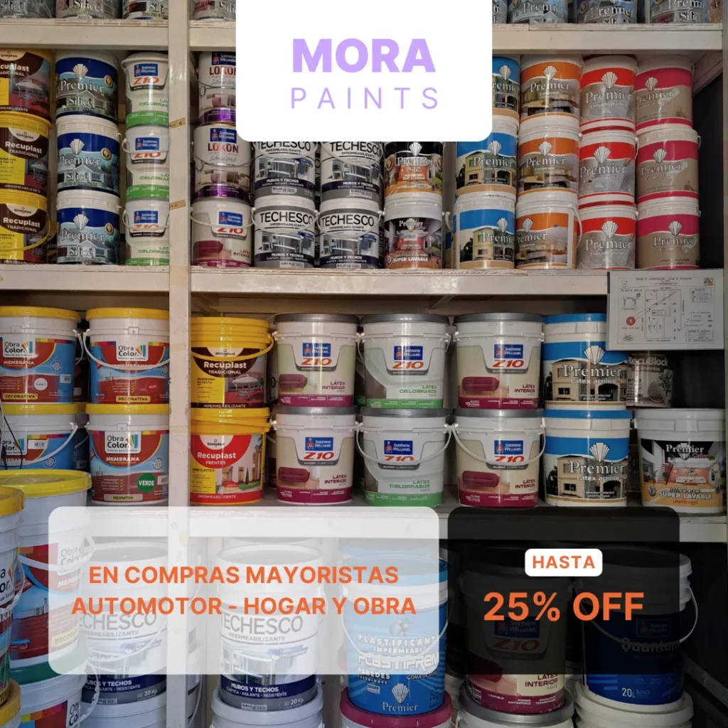 En Mora Paints, cada pared cuenta su historia. Pinturas, revestimientos y soluciones para que tu obra hable por vos.